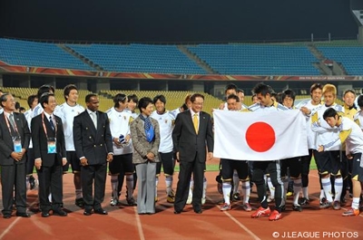 日本サッカー協会名誉総裁 高円宮妃殿下、文部科学省の川端達夫大臣が公式練習会場を視察