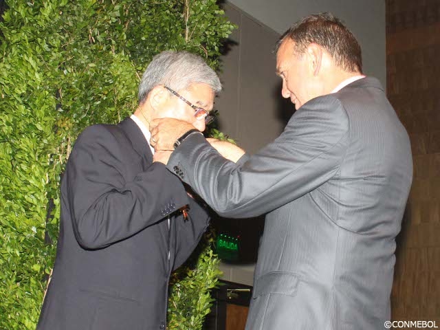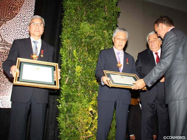 大仁会長とスルガ銀行岡野社長兼CEOが南米サッカー連盟の特別勲章を受章