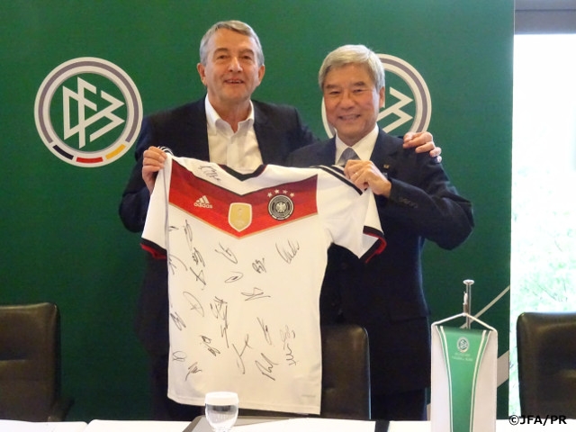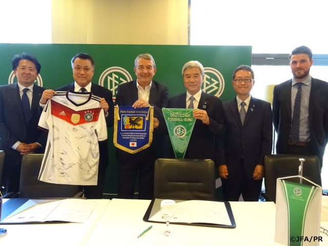 公益財団法人 日本サッカー協会(JFA)は6月5日、ドイツサッカー連盟とパートナーシップ協定を再締結いたしました。同連盟とは、2011年6月にパートナーシップを締結、その後2013年7月に再締結をしていますが、今回協定内容、実施事項を拡大し、再度の締結の運びとなりました。今回の協定締結により、今後さらに両協会の関係強化、両国のサッカーの発展・成功のため、積極的に相互協力を図っていきます。