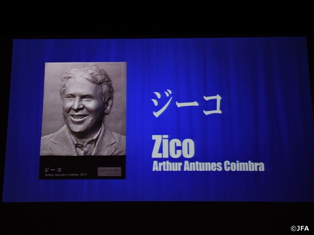 日本サッカー協会創立記念日の9月10日(土)、名誉総裁高円宮妃殿下ご臨席の下、JFAハウスにて「第13回日本サッカー殿堂掲額式典」が開催されました。日本サッカーミュージアム地下1階の「日本サッカー殿堂」に、今回ジーコ元日本代表監督と1936年に開催されたベルリンオリンピック日本代表チームを掲額。ジーコ氏は総監督を務めるインドスーパーリーグ、FCゴアの指揮をとるために欠席しましたが、Jリーグ開幕戦でのハットトリックや日本代表監督当時を回想した映像が会場に上映されました。また、鬼籍に入ったベルリンオリンピック日本代表チームの選手、役員の方々に対し、親族、関係者の方々に記念プレートが田嶋幸三 日本サッカー協会会長より手渡されました。その後、親族や関係者の方々へのインタビューでは、故人のベルリンオリンピックでの思い出やサッカーに対する情熱が語られ、多くの拍手が送られました。