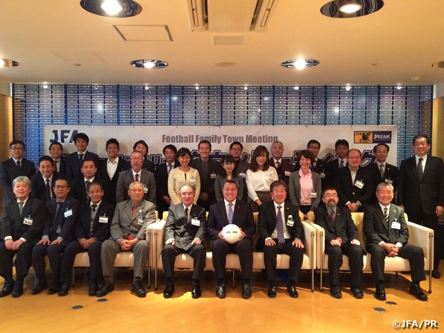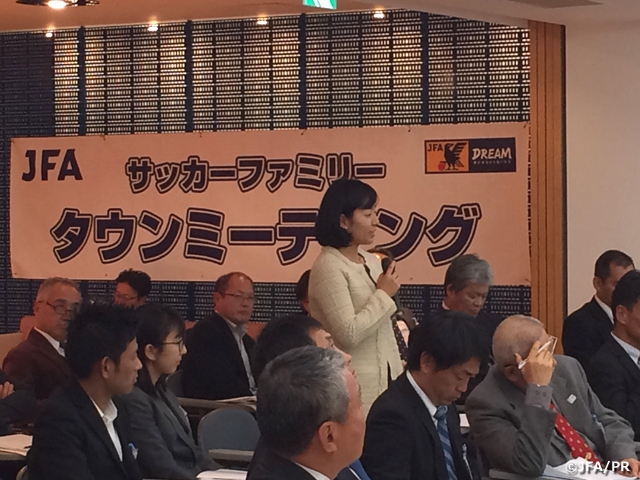 サッカーファミリータウンミーティングは、サッカー現場、フロントラインで活躍する皆さまを応援し、支援するサッカー協会であるという方針のもと、今後の日本サッカー界発展のために、皆さまから様々な声を直接お聞かせいただき、意見交換を行うものです。