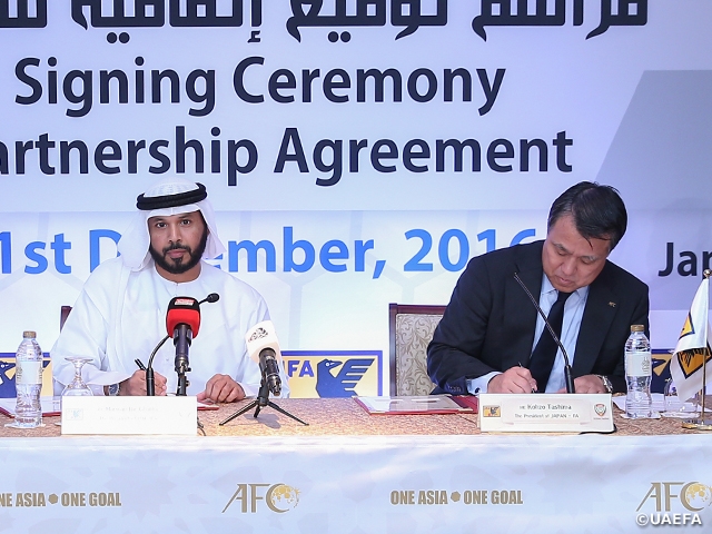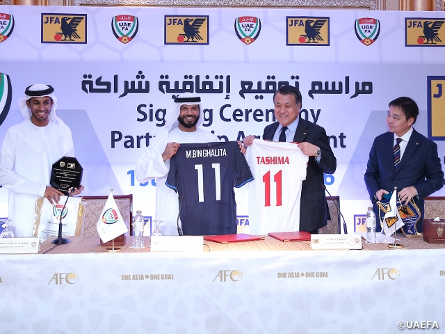 公益財団法人 日本サッカー協会(JFA)は現地時間12月1日、アラブ首長国連邦(UAE)でUAEサッカー協会とパートナーシップ協定を再締結いたしました。今回の協定締結により、今後さらに両協会の関係強化、両国のサッカーの発展・成功のため、積極的に相互協力を図っていきます。