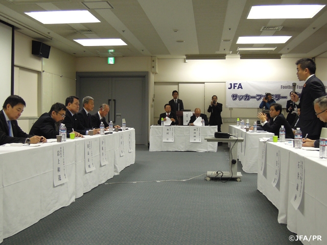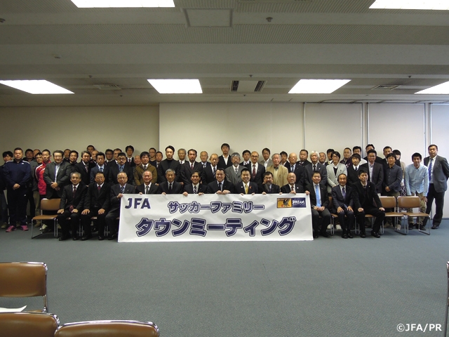 「サッカーファミリータウンミーティング」は、JFAはサッカー現場、フロントラインで活躍する皆さまを応援し、支援するサッカー協会であるべきという方針のもと、今後の日本サッカー界発展のために、皆さまから様々な声を直接お聞かせいただき、意見交換を行うミーティングです。