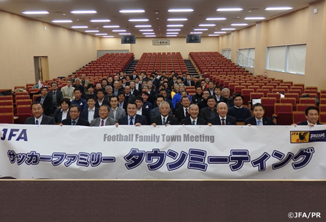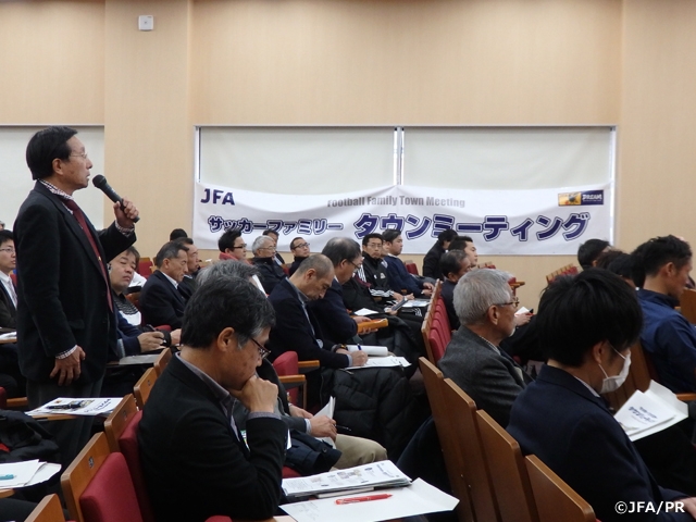 「サッカーファミリータウンミーティング」は、JFAはサッカー現場、フロントラインで活躍する皆さまを応援し、支援するサッカー協会であるべきという方針のもと、今後の日本サッカー界発展のために、皆さまから様々な声を直接お聞かせいただき、意見交換を行うミーティングです。