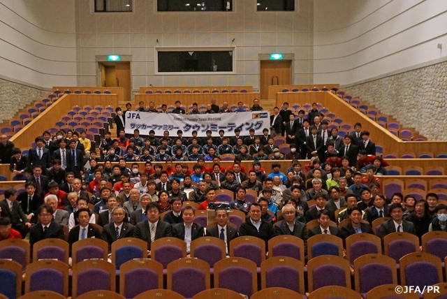 「サッカーファミリータウンミーティング」を3月12日(日)、春野文化ホール ピアステージ大ホール(高知県高知市)にて開催しました。指導者、審判員、保護者、クラブ関係者、自治体関係者など、約270人が参加しました。