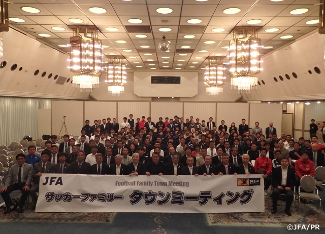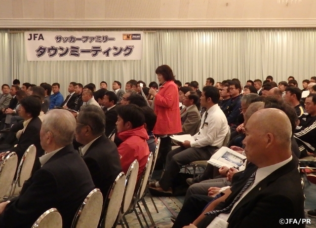 「サッカーファミリータウンミーティング」は、JFAはサッカー現場、フロントラインで活躍する皆さまを応援し、支援するサッカー協会であるべきという方針のもと、今後の日本サッカー界発展のために、皆さまから様々な声を直接お聞かせいただき、意見交換を行うミーティングです。