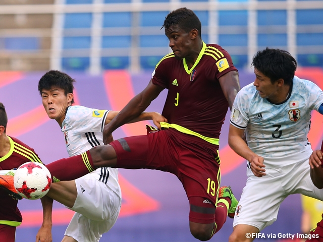 5大会ぶりに世界の舞台を踏んだU-20日本代表は、南アフリカ、ウルグアイ、イタリアとグループステージを戦い、1勝1分1敗。各グループ3位チームのうち、成績上位4チームに入ってノックアウトステージに進出しました。ラウンド16では、この大会で準優勝を遂げたベネズエラと対戦。集中した守備で相手の攻撃を抑えながら果敢にシュートを狙いましたが、試合は90分では決着せず、延長戦に突入しました。気力を振り絞ってゴールを狙うも108分にベネズエラに得点を許し、残念ながらベスト8進出はなりませんでした。
