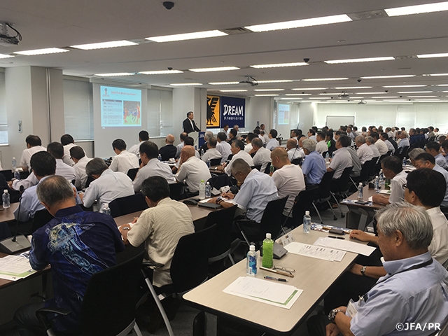 日本サッカー協会(JFA)は7月21日(土)、2018年度の都道府県サッカー協会代表者会議を開催し、各都道府県サッカー協会の会長、副会長、専務理事ら132名が出席しました。