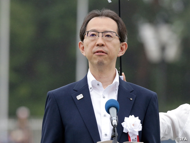 Jヴィレッジは1997年に開設しました。この20年間で日本サッカーは、6大会連続でワールドカップに出場、なでしこジャパンが世界一になり、さまざまな出来事を振り返るとJヴィレッジを抜きに語ることはできません。ワールドカップロシアで活躍した選手たちも、トレセン活動や大会でJヴィレッジを訪れています。そういう意味で、Jヴィレッジが果たした役割は、日本サッカーとって計り知れないものがあります。日本サッカー協会が目指す三位一体、代表チーム、ユースの育成、指導者の養成の3つを具現化するために、施設は完璧な存在でした。それが、震災を乗り越えて、過去にも増して、素晴らしい施設になったことに感謝いたします。また、これまで14時46分に止まっていたスタジアム時計をいつも見ていました。今回、それが子どもたちのキックオフと共に7年4カ月ぶりに動き始めたことは非常に感慨深いものがありました。改めて、サッカー界全体で、Jヴィレッジを盛り上げて、サポートしなければならないと感じました。そして、このJヴィレッジの復興が、福島県の復興につながると信じています。