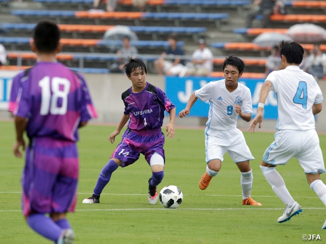 続いて行われたエキシビションマッチでは、JヴィレッジSCと福島県選抜U-15が対戦。試合前に、東日本大震災や平成30年7月豪雨の犠牲者を悼み黙とうが実施されました。キックオフは、震災発生時刻の午後2時46分に合わせて開始され、震災で止まっていたスタジアムの時計もまた動き始めました。試合は、JヴィレッジSCと福島県選抜U-15の両チームが前半に1点を奪い合い、1-1の引き分けで終了しました。
