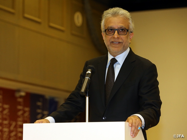 シェイク・サルマン会長は、近年の日本サッカーの目覚ましい成長と実績をたたえ、アジアの中でモデルとなるべきサッカー協会であると述べました。またここに至るまで尽力した役員、チーム関係者、そしてそれを支えた事務局員にも敬意を表しました。