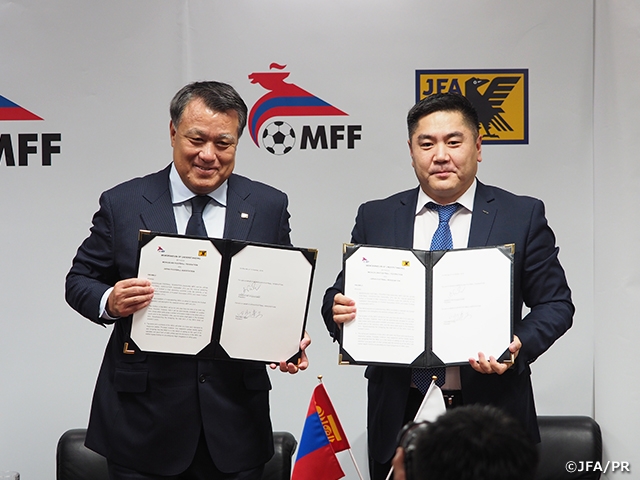 公益財団法人 日本サッカー協会は本日、モンゴルサッカー連盟(Mongolian Football Federation)とパートナーシップ協定を再締結いたしました。今回の締結により、両者の関係をさらに強固にし、両国のサッカー発展のため、さらなる相互協力を積極的に図っていきます。概要は下記の通りです。