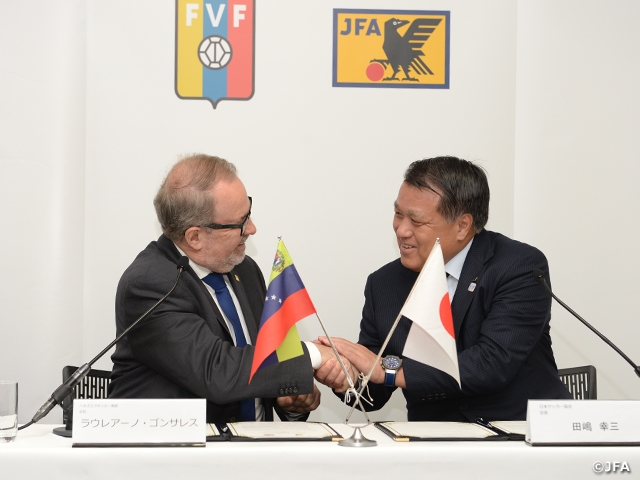 公益財団法人 日本サッカー協会は19日(火)、ベネズエラサッカー連盟(Federacion Venezolana de Futbol)とパートナーシップ協定を締結しました。両国のサッカー発展のため、今回の締結により、相互の協力関係をさらに深めていきます。概要は下記の通りです。