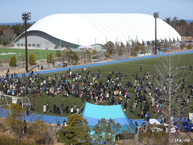 また、地震発生時刻の14時46分にはリモートで理事会メンバーとJFA職員、そして、この日、Jヴィレッジを訪れていたサッカーファミリー(写真)もその時間に合わせ、1分間の黙祷を捧げて震災で犠牲になった方々のご冥福をお祈りしました。