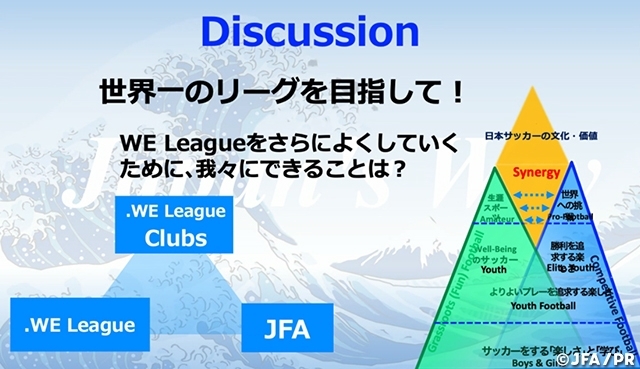 もう一度なでしこジャパンを世界一にするために、日本のトップリーグの監督がリーグ戦を戦った中で感じたことを忌憚なく話し合えることは有意義だと感じました。男子選手よりも成長の早い女子選手の、育成年代における成長曲線をどう捉えてトップチームに送り込むのか。データはもちろんのこと、指導者の感覚などを集結させ、フィジカルだけではなくメンタルを含めた経験を話し合えば日本の女子サッカーは必ずレベルが上がってくると感じています。そういった意味でも『WEリーグ監督フォーラム』は非常に良い機会だと思います。