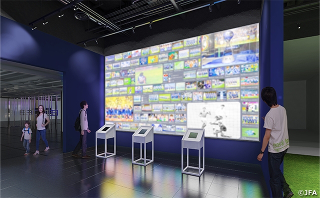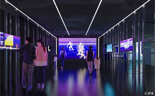 日本サッカーの歴史や名シーンなど、往年のサッカーファンが熱くなるレガシー展示のみならず、空間再現ディスプレイ(Spatial Reality Display)など最新のデジタル技術を活用した映像コンテンツなど、実物展示と3Dアーカイブを組み合わせた展示コーナーを展開します。