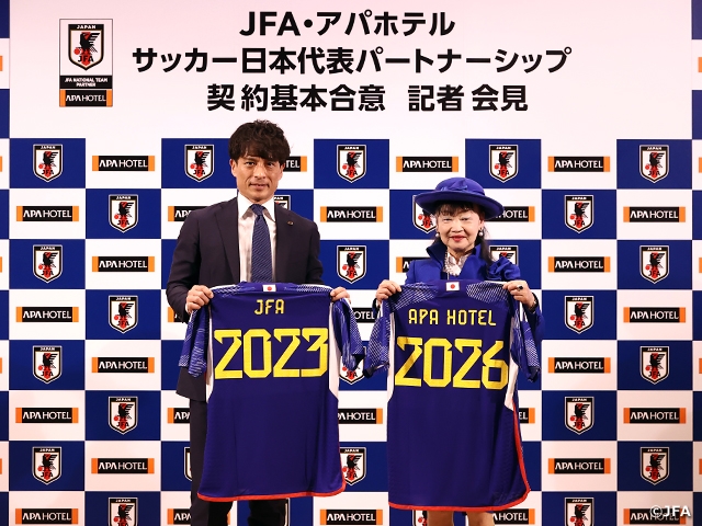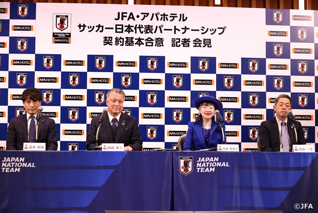 今回の契約ではJAPAN PRIDE、日本はもっと強くなれる、をコンセプトに、日本代表の存在価値と、国内外のサッカーファミリーなどJFAが持つ資源、アパホテル様のブランド力と全国を網羅するネットワークを融合させて、新しい価値を生み出していきます。それが日本代表の価値につながり、多くの皆さまが夢や誇りを持てる社会づくりに貢献できるものと信じております。アパホテル様とともに、国際舞台でさらなる飛躍を目指す日本代表チームをつくっていきたいと思います。