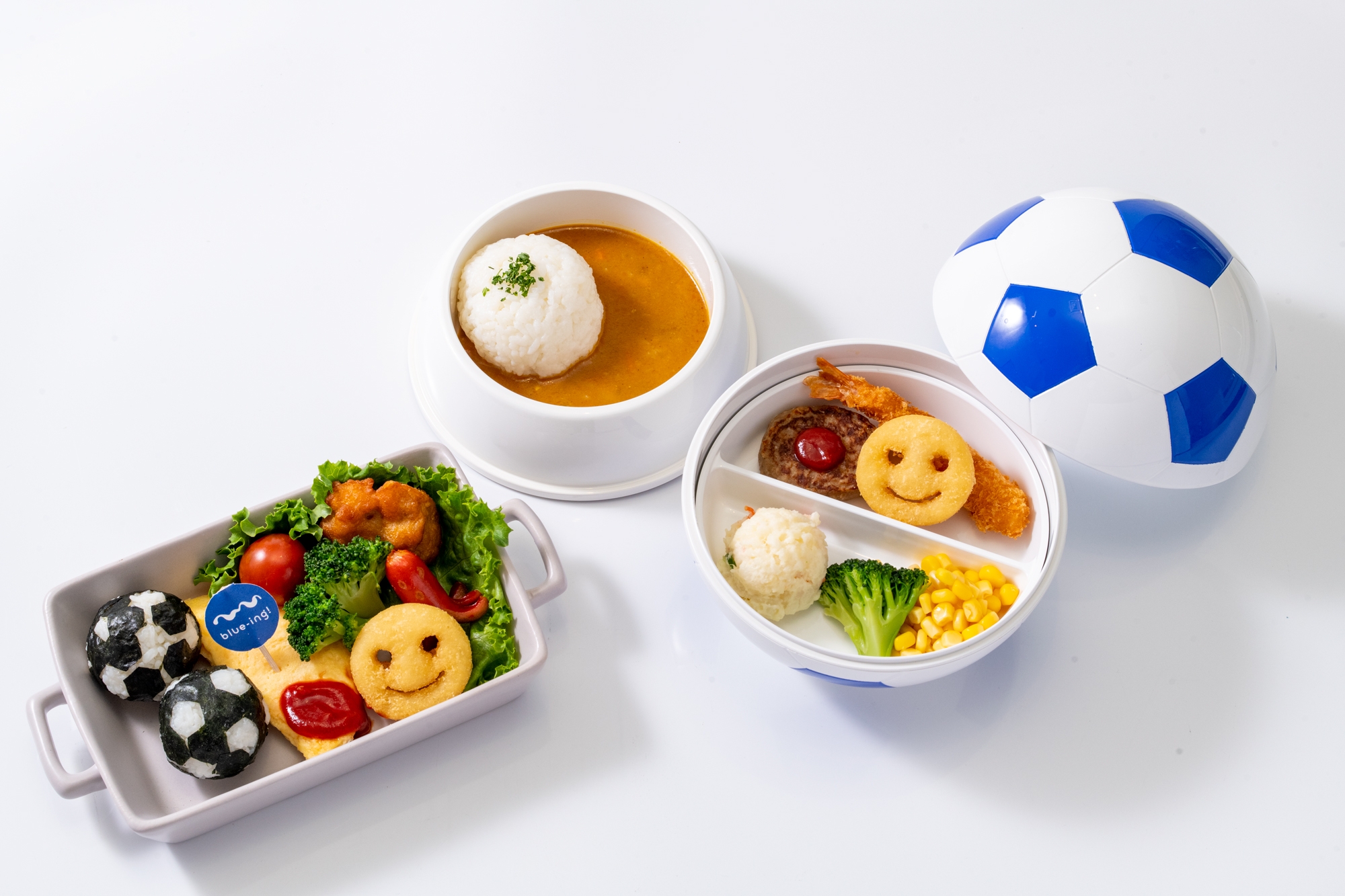サッカーボールおにぎりセット(左)、サッカーキッズプレート(右)
