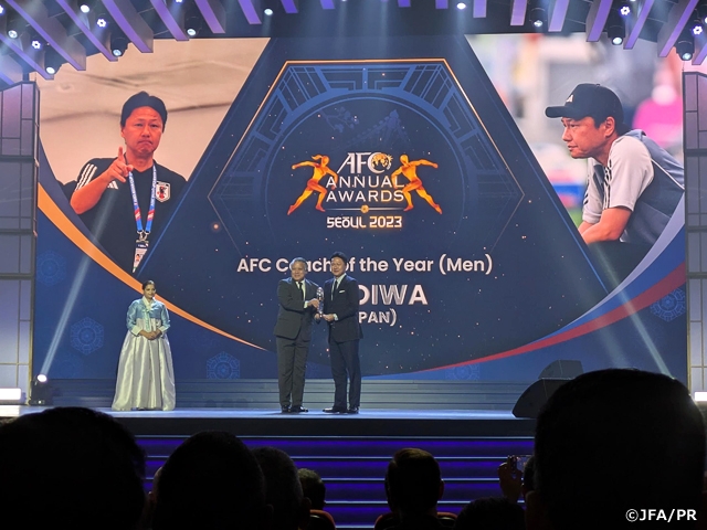 「AFCアニュアルアワード2023」が10月29日(火)、韓国・ソウルで開催され、大岩剛監督が年間最優秀監督賞(男子)、清家貴子選手が女子年間最優秀選手賞、波多野祐一レフェリーが審判特別賞を受賞しました。また、日本サッカー協会は年間最優秀協会賞(プラチナム)を受賞しましたのでお知らせします。