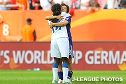 <試合後、宮間選手とイングランドの選手が抱き合ってお互いの健闘を讃えるシーン>
