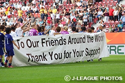 FIFA女子ワールドカップ ドイツで、日本はFIFAの許可を得て試合後に東日本大震災に対する世界からの支援に感謝するバナーを掲げました。