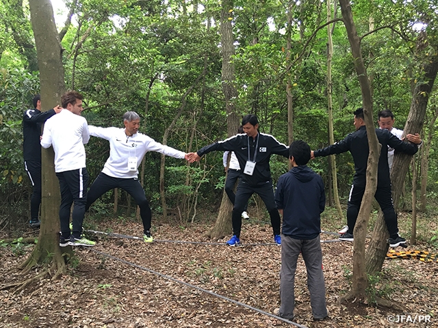 JFAの指導者養成講習会の中で、大切にしている「Open Mind」を、20名の受講生が示してくれた6日間の短期講習でした。事前課題である、対戦チームの分析のグループワークの時間から積極的なディスカッションがなされ、質の高い意見交換がされていました。翌日の野外研修では、それぞれのキャラクターを発揮しながら、課題の克服取り組み、さらにお互いの理解を深めて行く変化がみられました。今回発揮した取り組み姿勢をベースに、これから進めるプログラムを、受講生がさらにお互いに刺激し合うことできる講習会になるためのスタートがきれたと思います。