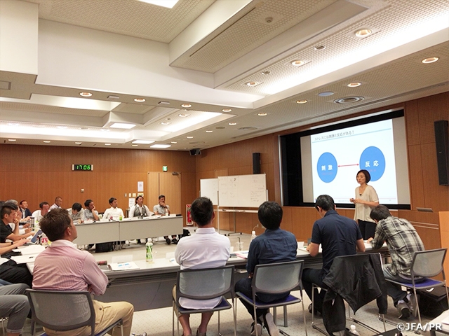 先週始まった講習会は、場所を都内に移して5月21日(月)より集中講習として始まりました。初日はJFAハウスに集合し、初めに「フィジカルコンディショニング概論」と田嶋会長から「JFAの取り組み」と題して色々なお話を伺いました。
