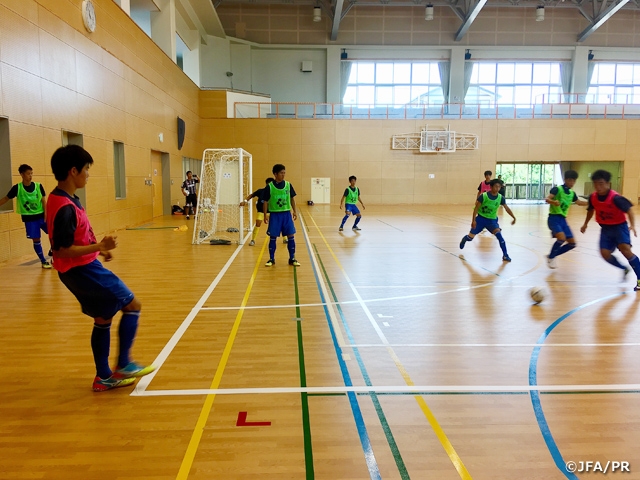今回は九州地域のU-18年代を対象とし、JFA 第5回全日本U-18フットサル選手権大会に九州地域代表として出場する日南学園高校サッカー部にトレーニングの指導を行いました。また、地域の指導者の方々は実際のトレーニングを見学した上で、トレーニングのコンセプトや内容のレクチャーを受講しました。