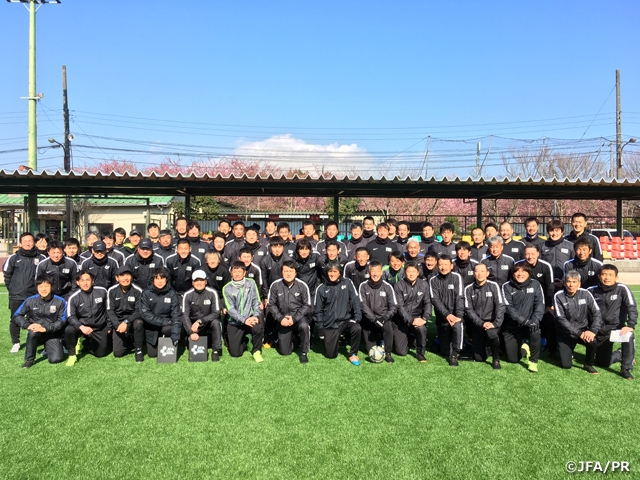3月12日(火)から15(金)日の4日間、JFAトレセンコーチ研修会が静岡県御殿場市で実施されました。この研修会は、全国で行われるトレセン活動に関わるトレーニングメニューの確認や指導力向上を目的とし、毎年実施されており、今回はトレセンコーチ、ナショナルコーチングスタッフ約60名が参加しました。