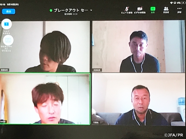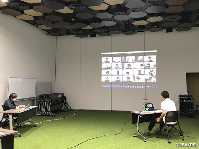 初日は、前週に行われた鹿島ハイツでの短期講習会の振り返りから始まり、田嶋幸三JFA会長からJリーグの歴史に沿いながら、指導者として大切にしてほしいことなど、受講者への熱い激励を頂きました。受講生全員で、大いに成長していこうと士気が高まりました。慣れないZOOMでのコミュニケーションでしたが、皆、受け身ではなく、時に意見を交換しながら意欲的にスタートできました。