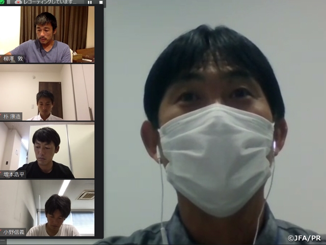 オンラインでの研修も2週目を終えました。『皆で集まり講習をできたらどうなるのだろう』と考えることもありますが、少しずつZOOMでの研修にも慣れ、活発な意⾒が出るようになり、講習内容の理解がより深まってきたように感じます。このような状況の中で学べる機会を作っていただいたJFAや講師の⽅々に感謝し、新しい⽣活様式の中で受講⽣は前向きに取り組んでいます。
