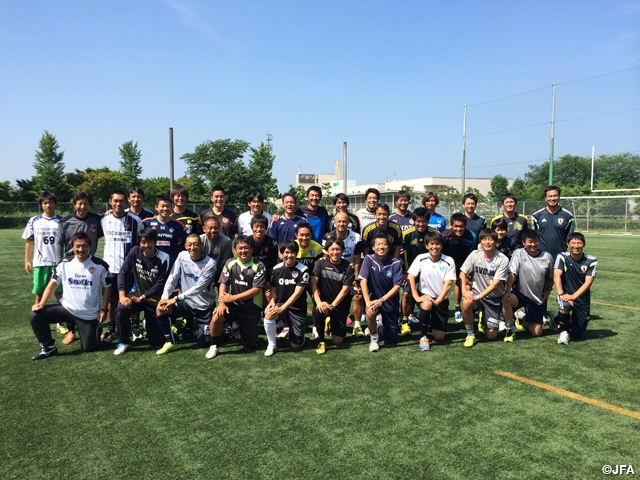初日も2日目も、各グループからの発表をもとに、全体で更にディスカッションを深めることが出来ました。梅雨時にもかかわらず3日間天候にも恵まれ、2名の補助プレーヤーの助けを借りて充実したコースを行う事ができました。ゴールキーパーA級は、日本に於けるゴールキーパー指導者の最上位ライセンスです。今後は、日本のゴールキーパー指導者のリーダーとして更にご活躍いただければと思います。