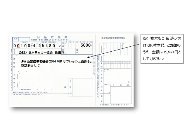 受講確定通知を受信後(参加申込み締切日の翌日にJFAより送信)、郵便局より受講料をお振り込みください。