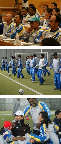 第3回JFAインターナショナルコーチングコースが、2008年4月19日から25日まで、6泊7日でJヴィレッジ(福島県)とJFAハウス(東京都)で行われました。アジアの17カ国から26名が参加しました。小野剛技術委員長の講義から始まり、講義10時間、実技11時間、指導実践6時間および最終テストのすべてのセッションが英語で行われるこのコースは、JFAのアジア貢献の一環であると同時に、アジア全体のレベルアップ、そして講師のナショナルトレセンコーチの国際力向上も一つの目的になっています。
