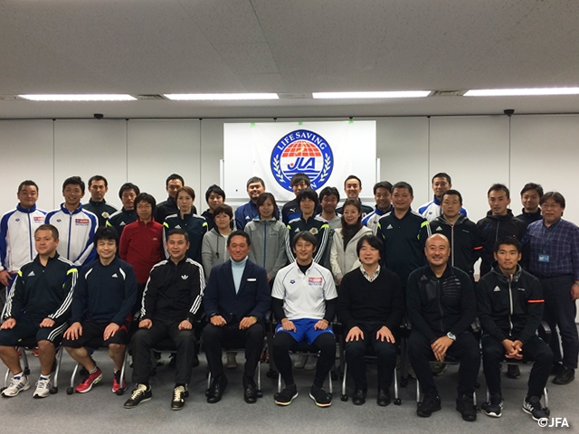 2月7日(土)、JFAハウスにてBLS講習会を行いました。これは、特定非営利活動法人 日本ライフセービング協会(JLA)の全面的な協力のもと、毎年JFAのトレーナーおよび事務局スタッフを対象に開催しています。