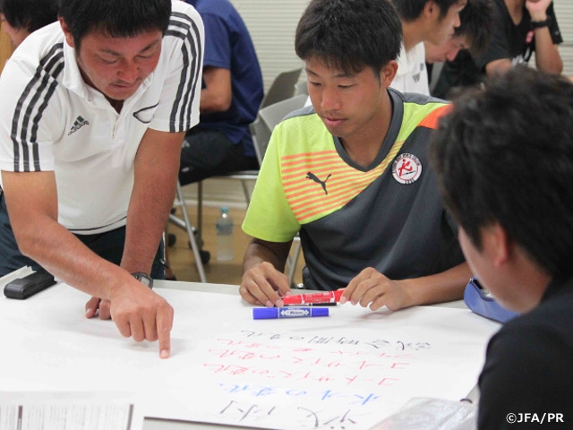 ジュニア年代のゴールキーパーの指導ができる人材を養成すると同時に、都道府県のGK指導者のリーダーとなる人材を育成することを目的に開設しています。コースでは習得すべきテクニックとして10テーマを挙げ、ファンクショントレーニングとゲームの中でお互いにプレーをしながら指導実践を行っていきました。目の前にいる選手を改善するために、コーチングで選手の考えを引き出したり、積極的にデモンストレーションを行うことにもトライしていただきました。受講された指導者の中には、指導チームだけでなく地域や県での指導に携わっている方も多いことから、今後の日本のGKのレベルアップにつながることを期待しています。