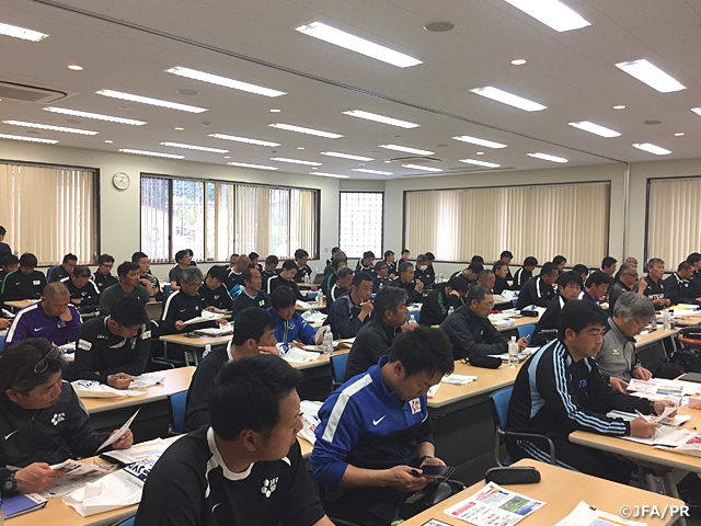 3月28日(水)~30日(金)の3日間、2018年度のB級コーチ養成講習会に向けたインストラクター研修会を実施しました。昨年より本格的にスタートした都道府県開催は、新たに14都道府県協会での開催が決定し、今年度はJFAコースと合わせて全46コースのB級養成講習会が開催されることになりました。