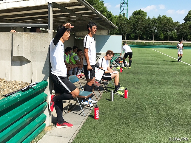 5日(水)午前の練習:「⑥3-4-3に対する最終ラインの守備の改善」「⑦相手陣地における攻撃陣の連携(奪われた後のリスク管理を含む)」午後の練習:「⑧カウンターを受けない守備の改善」「⑨カウンター攻撃の改善」「⑩セットプレー」。