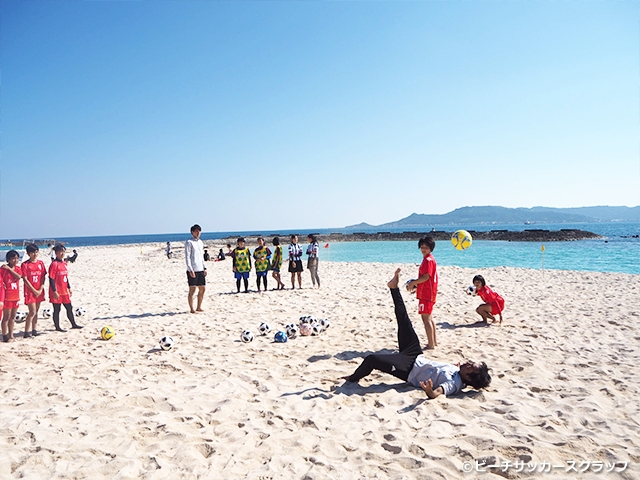今回、初めてJFA巡回ビーチサッカークリニックに参加させていただきました。沖縄開催ということもあり、12月の冬とは思えないほどの暖かさで、素晴らしい環境のもとで開催出来ました。初日は、ラモス監督も飛び入りで参加していただき、熱のこもった指導に子どもたちも引き込まれていました。2日目は、女子選手の参加が多いなかで、積極的にチャレンジする姿が非常に印象的でした。この2日間を通して、裸足でボールを蹴ることの素晴らしさを改めて感じました。これからもビーチサッカーの魅力を多くの子どもたちに伝えていけるよう精進します。そして、いつの日かビーチサッカー文化を日本に根付かせられるよう活動していきたいと思います。開催にあたってサポートいただきました関係者の皆様、誠にありがとうございました。