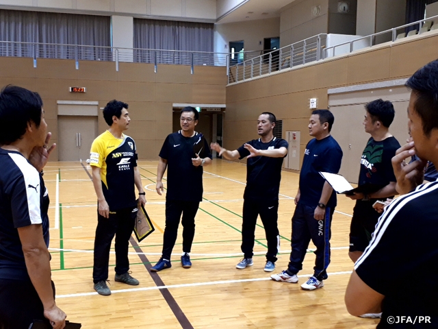 今年で3年目となるフットサルA級コースは、Fリーグや地域クラブ、ナショナルコーチングスタッフなど、様々な指導現場を持つフットサル指導者が参加し、互いに刺激し合い、非常に濃度の高い講習会になりました。
