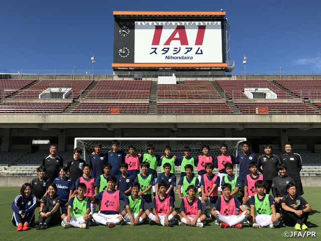 最終日は、10月6日(日)になでしこジャパンがカナダ女子代表と国際親善試合を行うIAIスタジアム日本平をお借りして、ゲームで締めくくる指導実践に取り組みました。