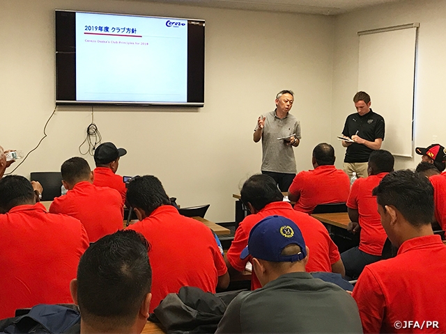 AFCプロディプロマコーチングコースとは、アジアサッカー連盟が定める指導者制度の最高位に値する指導者ライセンス(日本サッカー協会S級ライセンス相当)の習得を目指すコースで、5つのモジュールに分かれています。今回は第4回目のモジュールで、クラブアタッチメントがテーマであり、セレッソ大阪と大宮アルディージャにご協力いただきました。
