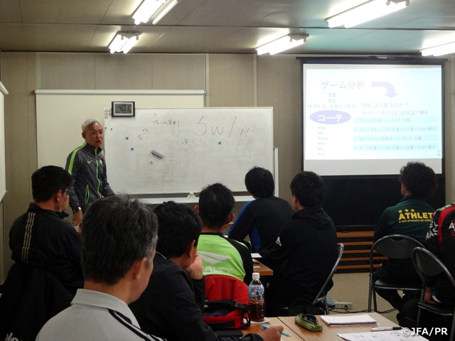 北は北海道、南は鹿児島県に及ぶ受講者39名が参加し、JFAアカデミー福島 男子チーフコーチ 中田康人氏による初日の講義、そして2日目は指導実践を行いました。