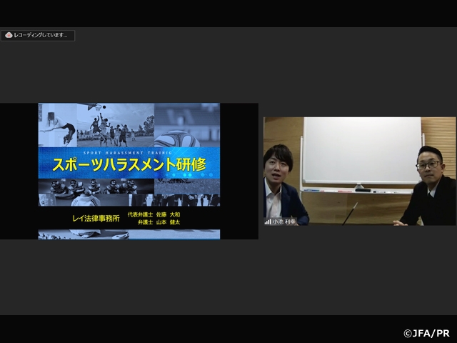 2日目。スポーツインテグリティの講義では、レイ法律事務所の佐藤弁護士と山本弁護士から主にハラスメントについて事例や想定問題に応える形で学びました。ハラスメントと一言で言っても、様々なものがあり、きちんと理解しなければ選手も自分自身も守ることができない。自身の今までの指導を振り返る良い機会となりました。