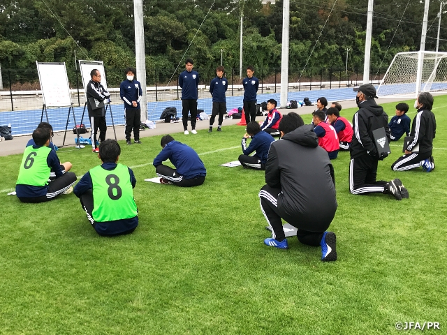 Module3もこれまでと同様、集合時にSmartAmp法による新型コロナウイルス検査で全員の陰性を確認し、秋晴れの空の下、高円宮記念JFA夢フィールドで短期講習をスタートしました。