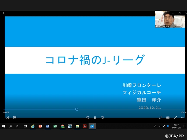 毎年恒例のJクラブフィジカルコンディショニング研修会は集合形式で行っていたところ、今年はオンラインでの開催となりました。今シーズンは超過密スケジュールとなりましたが、皆様お疲れのところたくさんのご参加をいただきました。