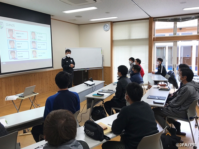JFAアカデミー熊本宇城の拠点である「宇城市立ふれあいスポーツセンター」で、11月24日(水)にアカデミーリフレッシュ研修会を2年ぶりに開催しました。アカデミーでの活動や取り組みの紹介、そして東京オリンピックのテクニカルスタディグループ(TSG)の報告などの講義だけでなく、実技も実施されました。
