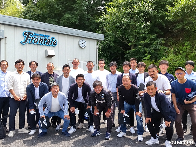 シーズンの折り返しとなる今週は、川崎フロンターレにご協力をいただき、麻生グラウンドでのトレーニングを視察しました。トレーニング後には鬼木達監督への質疑応答の時間も頂き、S級同期の浮嶋氏、元チームメイトの奥野氏という両インストラクターのファシリテートによる和やかな雰囲気の中、予定を超えた時間ご対応くださいました。