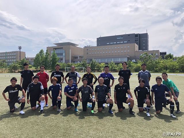 Jヴィレッジという個人的にも思い出深い場所で様々な人たちと出会い、指導者としても感慨深い6日間でした。何よりインストラクターのサポートのおかげで、個性と情熱を持った受講生同士が自由闊達にオープンマインドな姿勢で活動ができ、お互いに成長できたことに大きな喜びを感じています。指導実践はもちろん、講義においても、お互いにアウトプットをしながら学び合うことができました。指導実践では、選手が困っているタイミングこそコーチが関わる必要性が出てくること、楽しくて活気のある雰囲気こそが選手を成長させること、個の質を追求することや基準を明確に示すことのできるコーチングを目指すこと、などが印象に残りました。講義では、U12年代では、女子が男子と共にサッカーをすること、GKがFP(フィールドプレーヤー)を経験すること、保護者とのコミュニケーションをとるなどのチームマネジメントの大切さを学びました。また、言語技術やコーディネーション能力が伴ってこそのサッカー選手の成長があることを改めて実感しました。そして、新たに導入されたエモーションプログラムや日本の育成全体像では新たな価値観や文化に繋がるヒントを得ることができました。まだまだコースは続きますし、指導者としても成長過程にいますが、今後は前期で学んだことを生かして、地元である奈良県サッカーに携わる指導者仲間と地域をよりよくしていきたいです。インストラクターの方々、サポートスタッフの方々、そして受講生仲間の皆さん、本当にありがとうございました。中期も楽しんで成長しましょう!