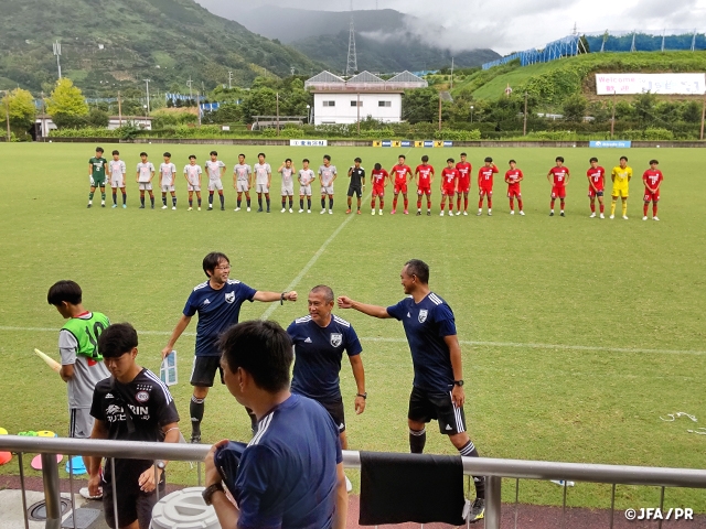 課題とModule3の準備、クラブ訪問等、Module2終了から休む間もなく迎えた短期講習では、4グループそれぞれが1つのチームを担当し、中2日で改善するというカリキュラムに取り組みました。最終日の試合ではゲーム前ミーティングからメンバー表の提出、ピッチ上練習まで、公式戦同様の流れでキックオフしました。後半は雷雨となり、試合の決着をつけることはできませんでしたが、トレーニングの手応えを感じ、講習の後半に向けて弾みとなる4日間となりました。